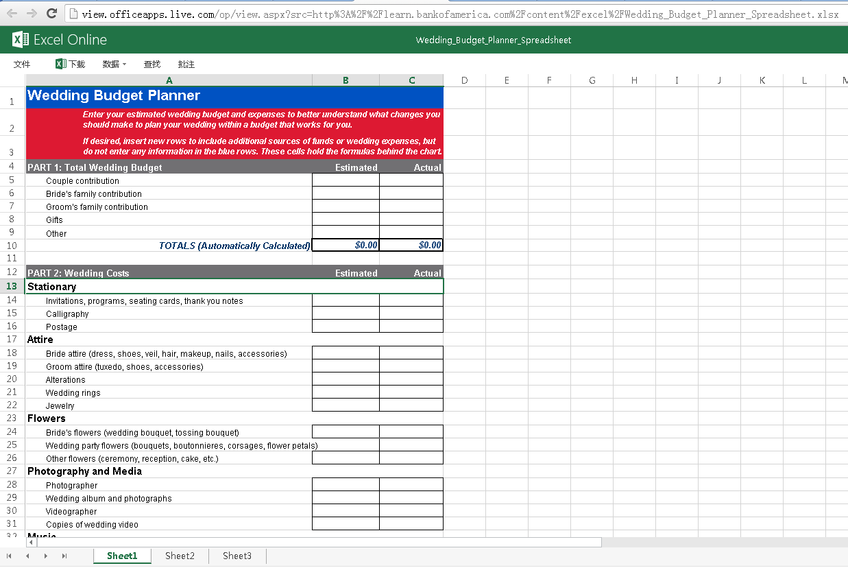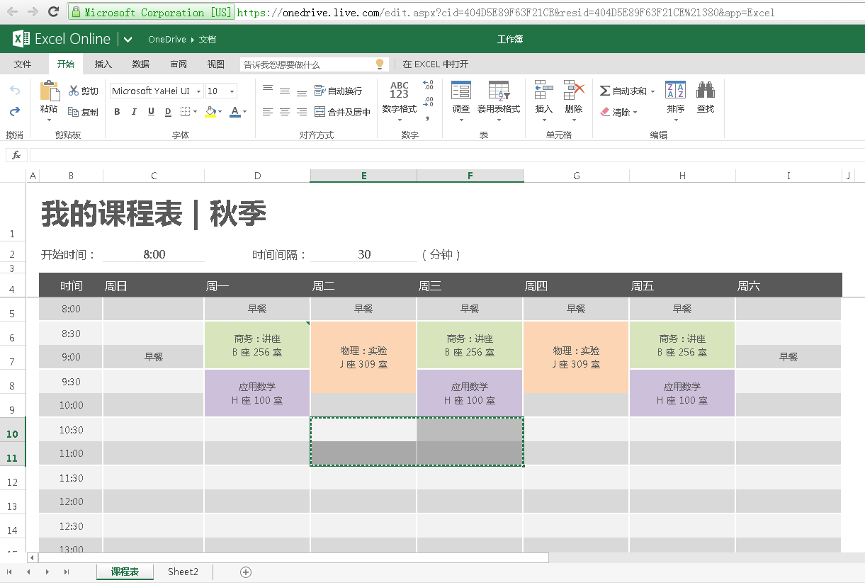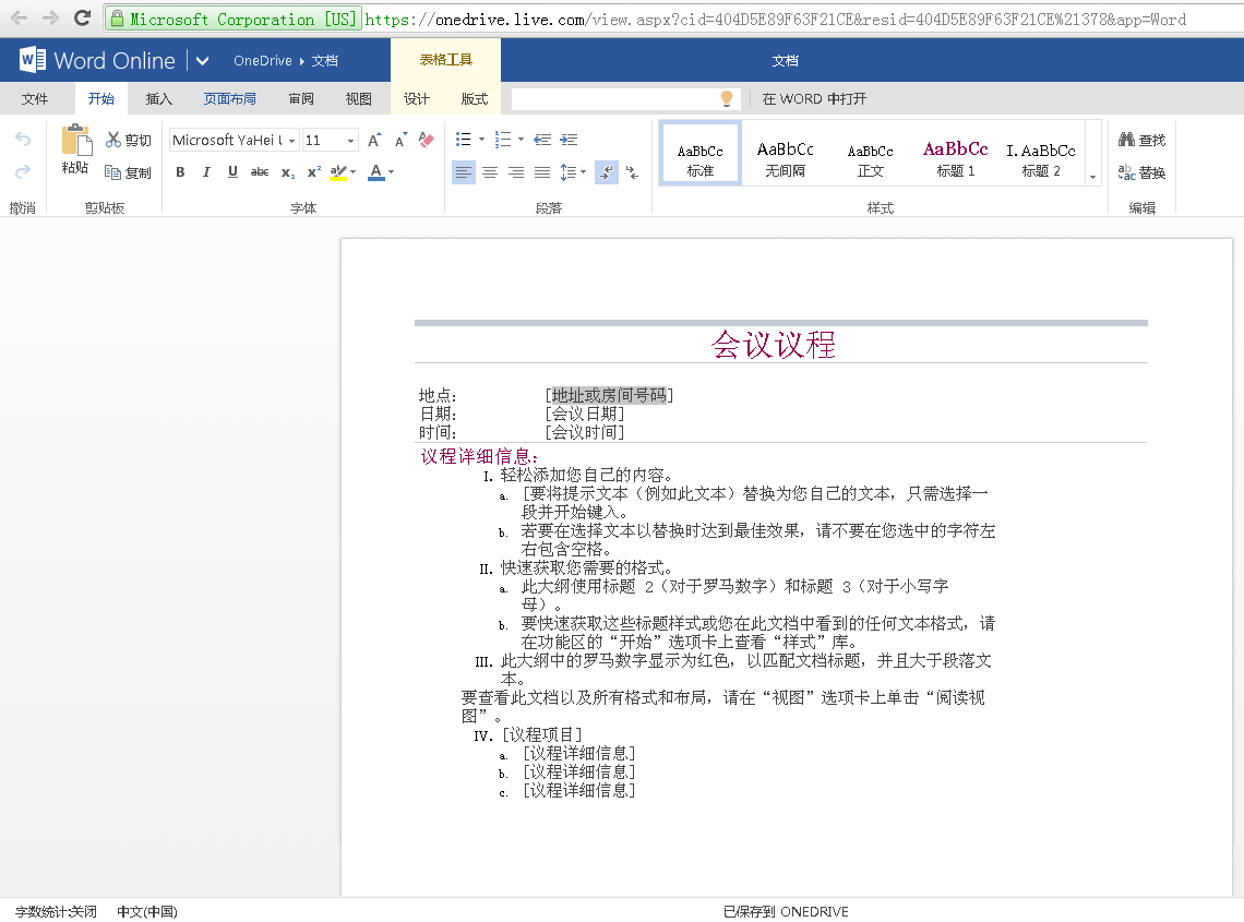 在线编辑需要登录live.com并从onedrive中打开或新建文档也可以来自在线模板(下面的Excel来自Excel Online模板,编辑后的文件会保存到你的onedrive中)